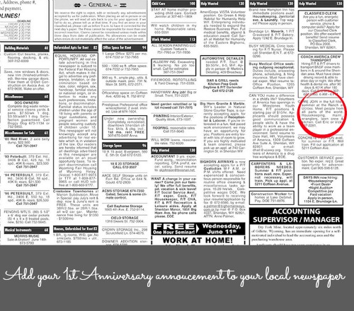 This would be a sweet addition to cut out and add to your anniversary memory book.