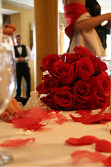 - Flowers are a lovely way to add colour and what is more romantic than red roses? If you are looking to do the decoration yourself a simple way to decorate a table is to use red rose petals and scatter them over the middle of the table, if you want to do this hours before the party you may want to use silk or dried petals. You could then use vases or arrangements of the roses on more prominent areas.