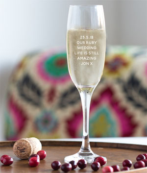 Or how about wine glasses where you can have your own Happy Anniversary message engraved.