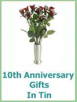 - Your 10th Anniversary is tin and there are lots of lovely gifts that you can fit into a tin, you could even make a cake for her even if you have never baked before this will be a winner. Plus on the modern list it is diamonds!